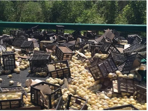 阜阳高速交警二大队接警后迅速赶到现场,帮助清理散落的水果,并对现场进行车辆分流。