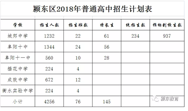 阜阳市(颍东区)2018年普通高中招生计划发布