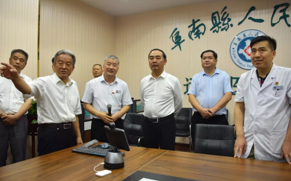 参会代表还参观了阜南县人民医院远程会诊中心,工作人员现场演示县医院与北京三零一医院、乡镇卫生院、村卫生室同时参加远程会诊的情况。