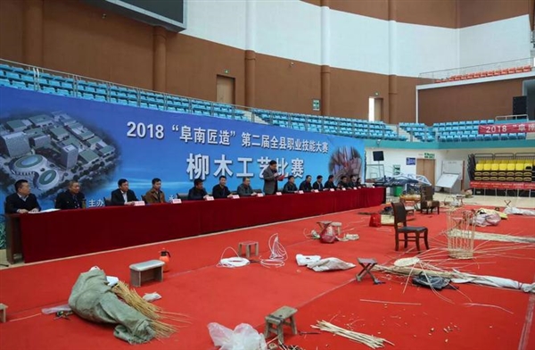4月14日上午,由阜南县政府主办,黄岗镇政府和轻工柳木协会承办,县商务局、曹集镇政府、中岗镇政府、郜台乡政府联合协办的2018”阜南匠造”第二届职业技能大赛柳木工艺比赛在县体育馆举行。 来自